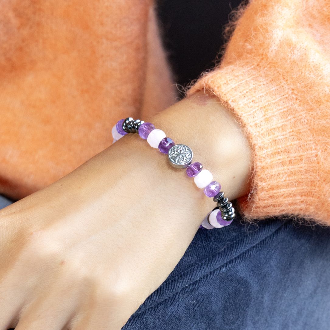 Bracelet Eden - Améthyste, Hématite, Quartz rose