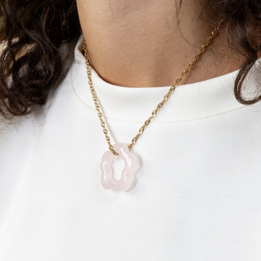 Pendentif Camélia - Quartz rose